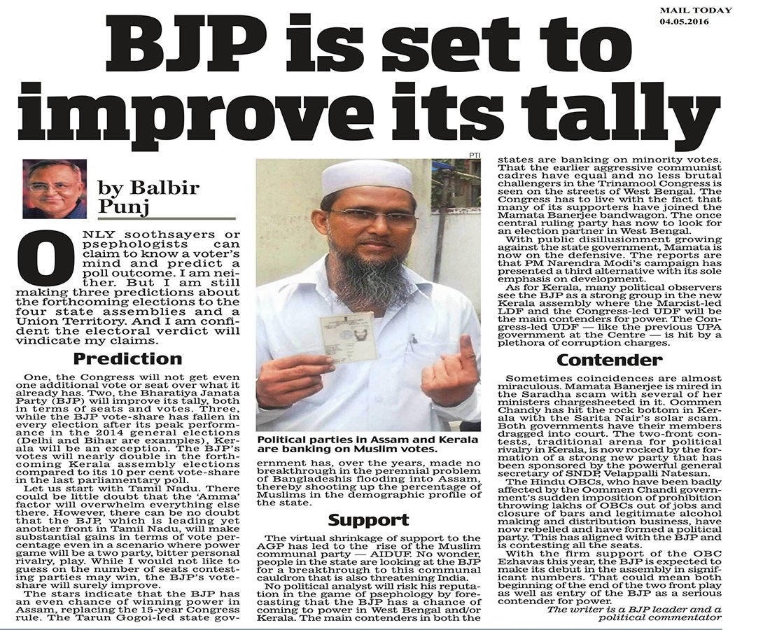 Mr. Balbir Punj is a well known columnist, political activist and a commentator on contemporary political developments.