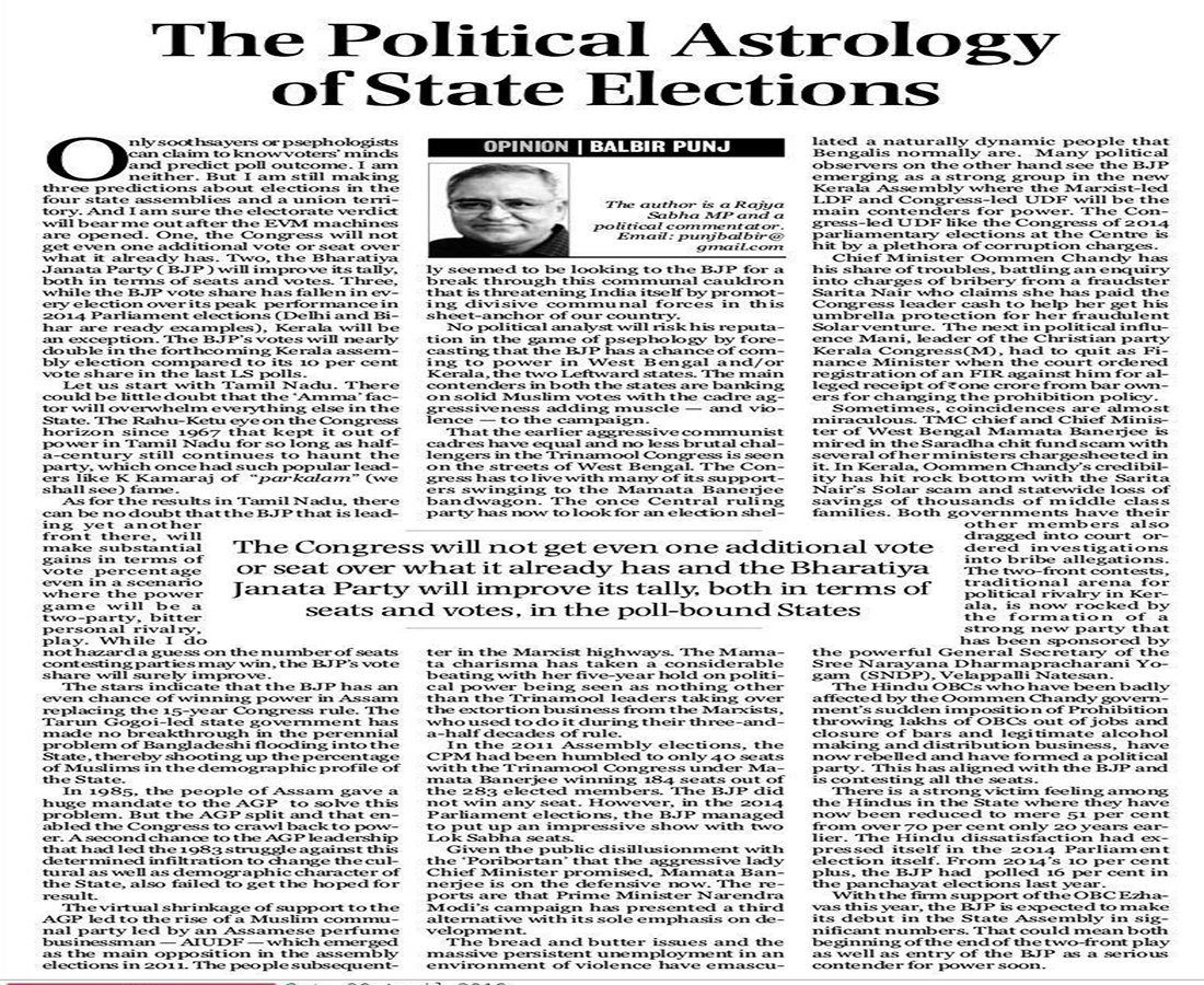 Mr. Balbir Punj is a well known columnist, political activist and a commentator on contemporary political developments.